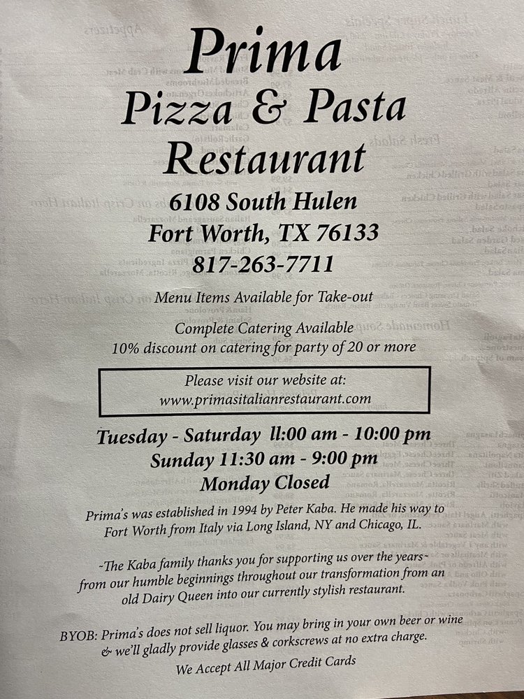 Introducing the menu at Prima's Pizza and Pasta, a delightful haven for Italian cuisine lovers in Fort Worth, TX. Renowned for its authentic Neapolitan-style pizza, the menu features a variety of options, including the classic White Wonder Pizza and the comforting Hawaiian Pizza, all offering the freshness and flavor you crave.